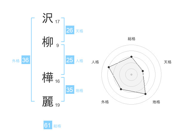 沢柳 樺麗さんの天格は26画の2点!