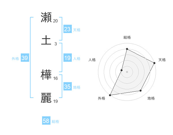 瀬土 樺麗さんの総格は58画の4点!