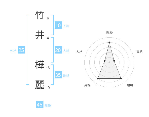 竹井 樺麗さんの総格は45画の4点!