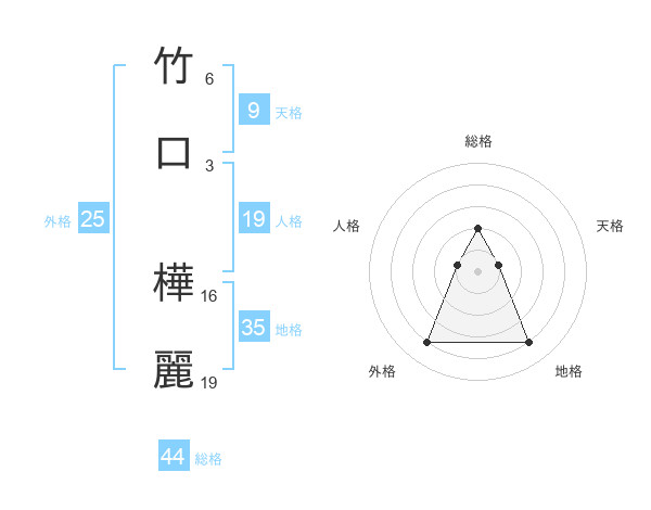 竹口 樺麗さんの総格は44画の2点!