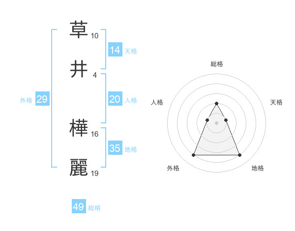 草井 樺麗さんを姓名の画数から五運を鑑定