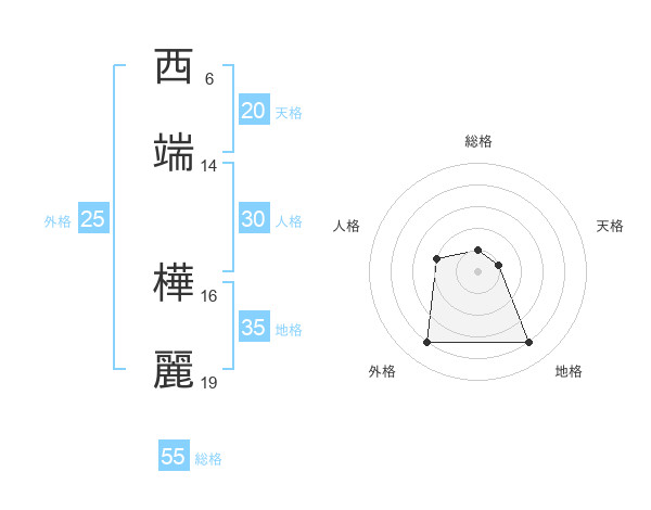 西端 樺麗さんの総格は55画の1点!