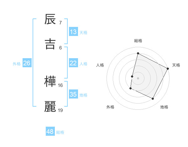 辰吉 樺麗さんを姓名の画数から五運を鑑定
