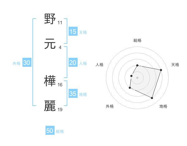 野元 樺麗さんを姓名の画数から五運を鑑定