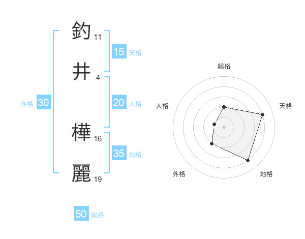 釣井 樺麗さんの総格は50画の2点!