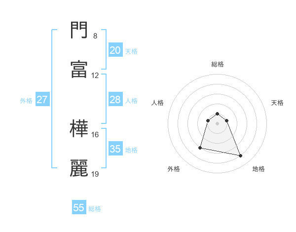 門富 樺麗さんの天格は20画の1点!
