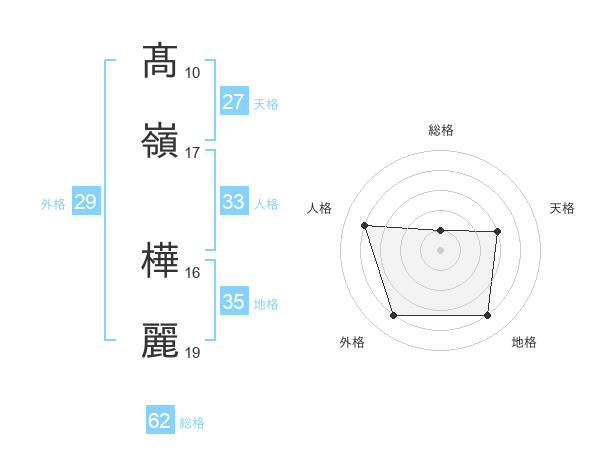 髙嶺 樺麗さんの天格は27画の3点!