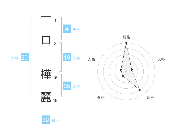 一口 樺麗さんを姓名の画数から五運を鑑定
