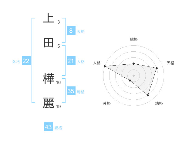 上田 樺麗さんを姓名の画数から五運を鑑定