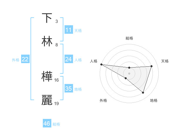 下林 樺麗さんの地格は35画の4点!