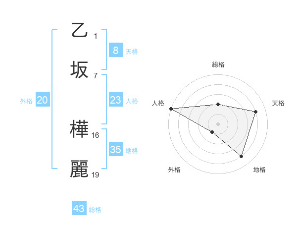 乙坂 樺麗さんの天格は8画の4点!