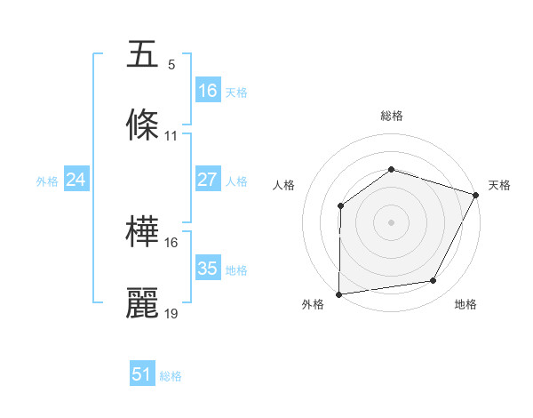 五條 樺麗さんを姓名の画数から五運を鑑定