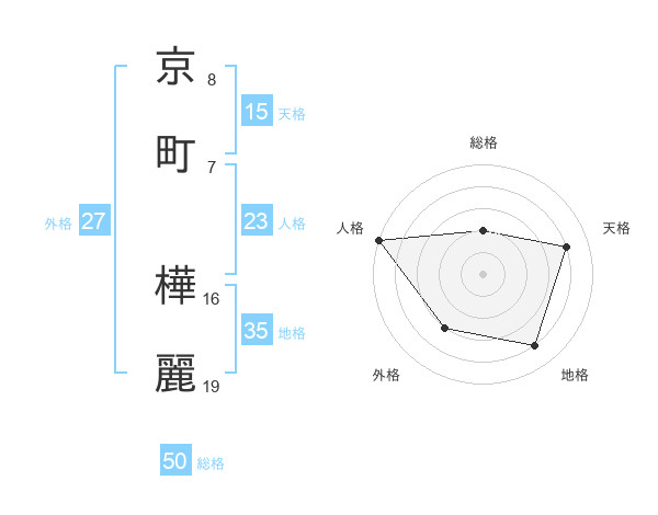 京町 樺麗さんの総格は50画の2点!