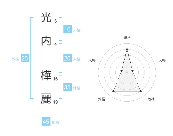 光内 樺麗さんの総格は45画の4点!