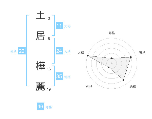 土居 樺麗さんを姓名の画数から五運を鑑定