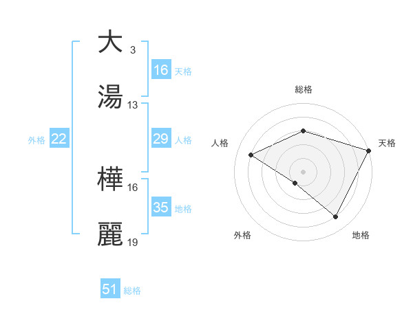 大湯 樺麗さんを姓名の画数から五運を鑑定