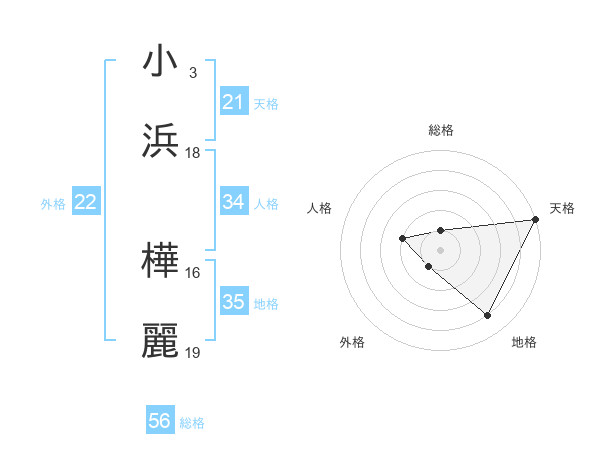 小浜 樺麗さんを姓名の画数から五運を鑑定