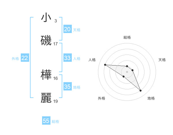 小磯 樺麗さんを姓名の画数から五運を鑑定
