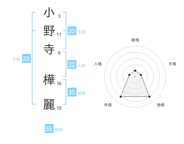小野寺 樺麗さんの総格は55画の1点!