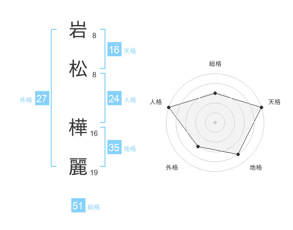 岩松 樺麗さんの総格は51画の3点!