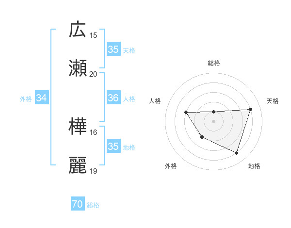 広瀬 樺麗さんの総格は70画の1点!