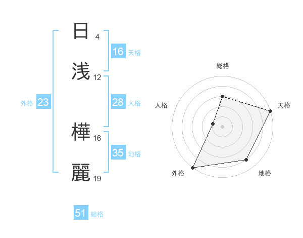 日浅 樺麗さんを姓名の画数から五運を鑑定