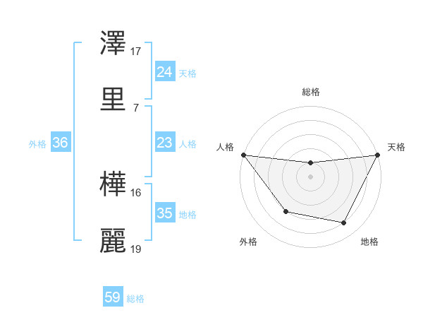 澤里 樺麗さんの天格は24画の5点!