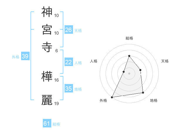 神宮寺 樺麗さんを姓名の画数から五運を鑑定