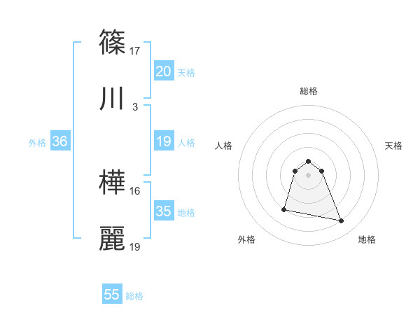 篠川 樺麗さんの総格は55画の1点!