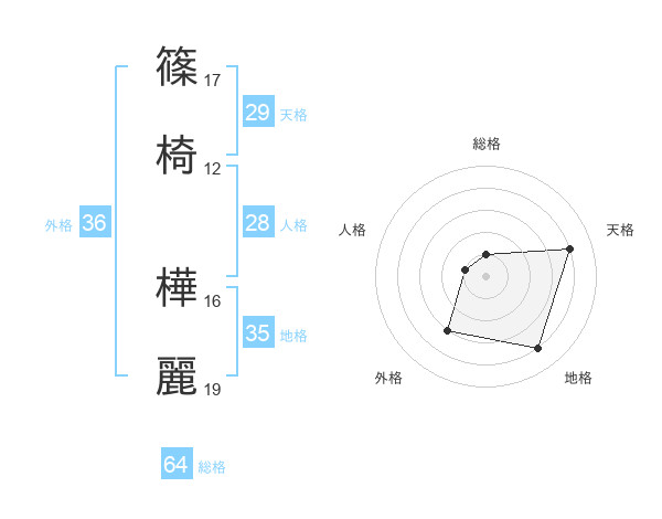篠椅 樺麗さんの天格は29画の4点!