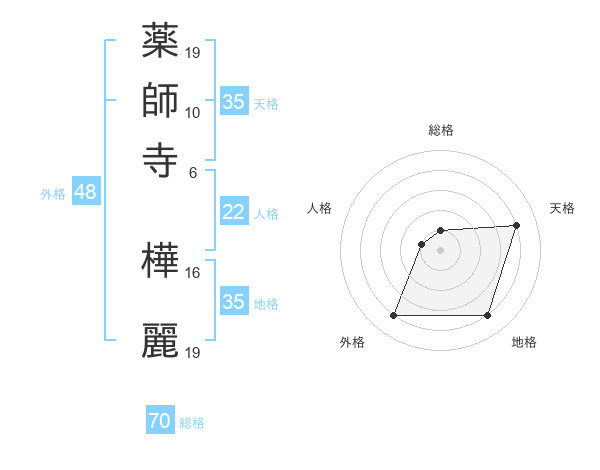 薬師寺 樺麗さんの総格は70画の1点!