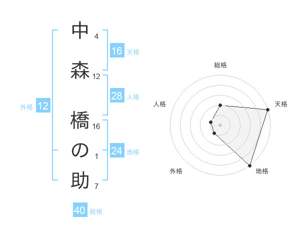 中森 橋の助さんを姓名の画数から五運を鑑定