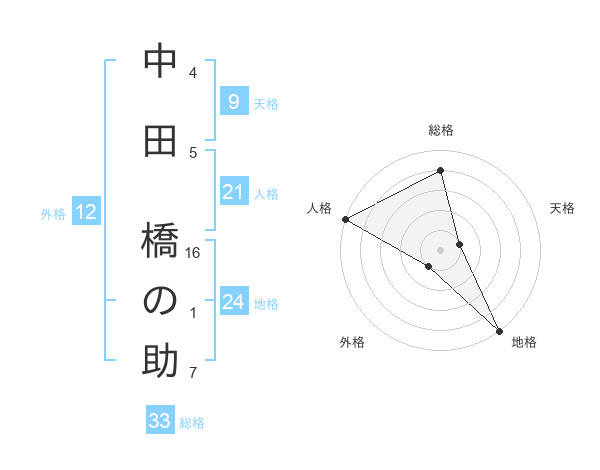 中田 橋の助さんの総格は33画の4点!