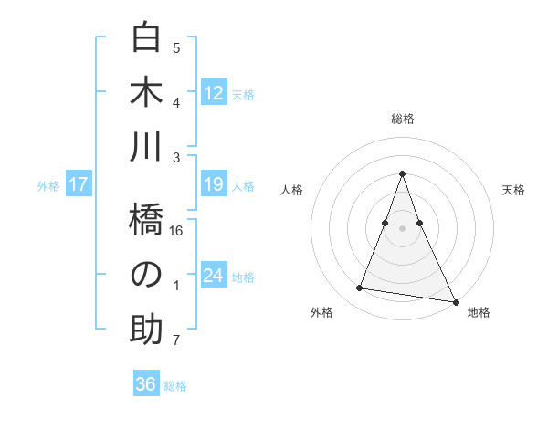 白木川 橋の助さんを姓名の画数から五運を鑑定