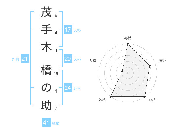 茂手木 橋の助さんを姓名の画数から五運を鑑定