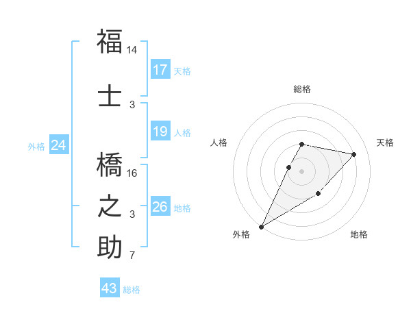 福士 橋之助さんを姓名の画数から五運を鑑定
