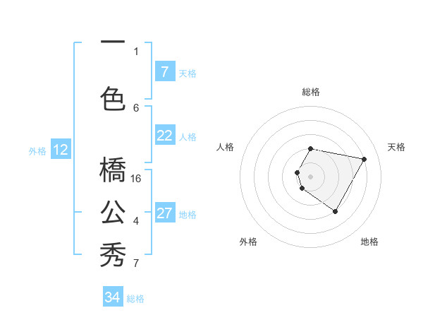 一色 橋公秀さんを姓名の画数から五運を鑑定