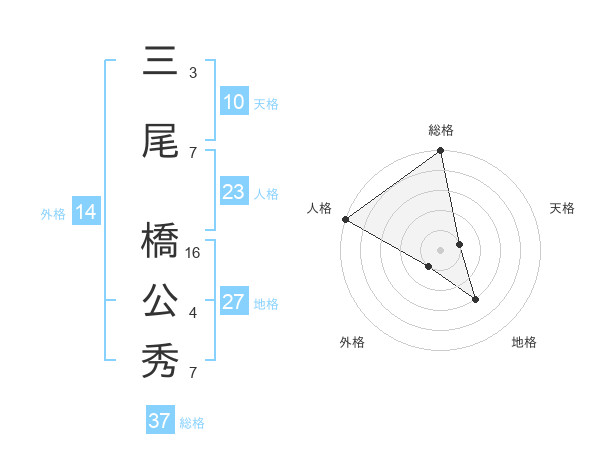 三尾 橋公秀さんを姓名の画数から五運を鑑定