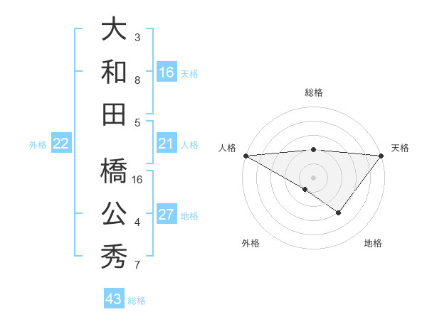 大和田 橋公秀さんを姓名の画数から五運を鑑定
