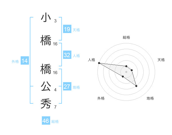 小橋 橋公秀さんを姓名の画数から五運を鑑定