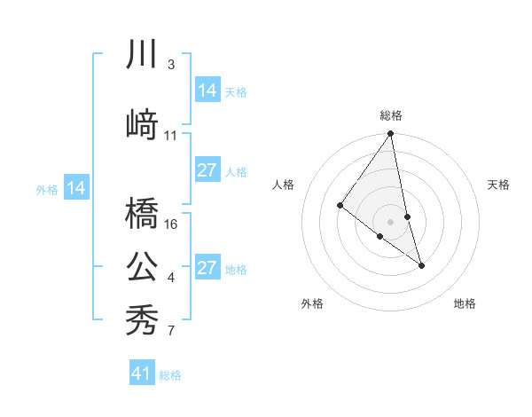 川﨑 橋公秀さんを姓名の画数から五運を鑑定