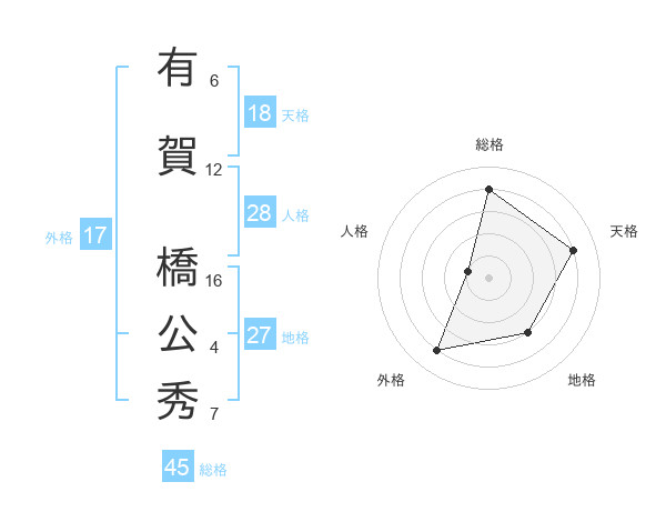 有賀 橋公秀さんを姓名の画数から五運を鑑定