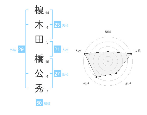 榎木田 橋公秀さんの総格は50画の2点