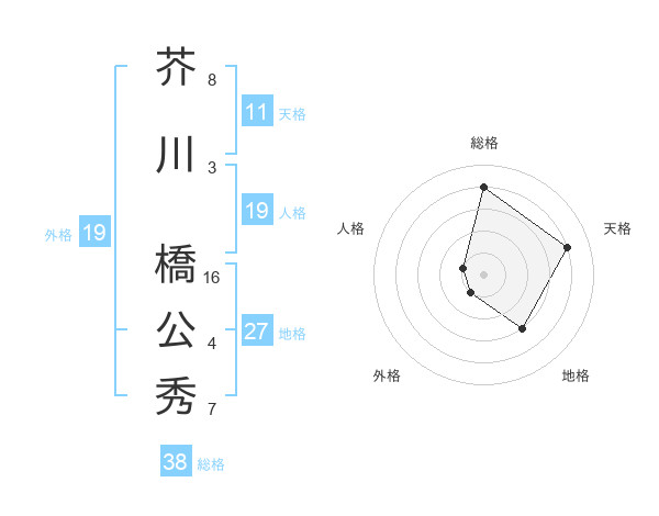 芥川 橋公秀さんを姓名の画数から五運を鑑定