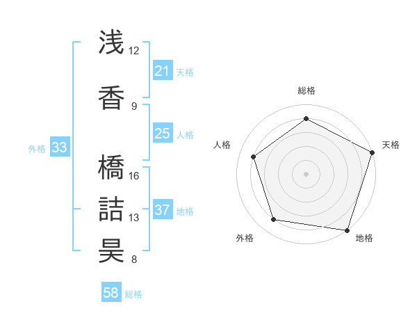 浅香 橋詰昊さんを姓名の画数から五運を鑑定