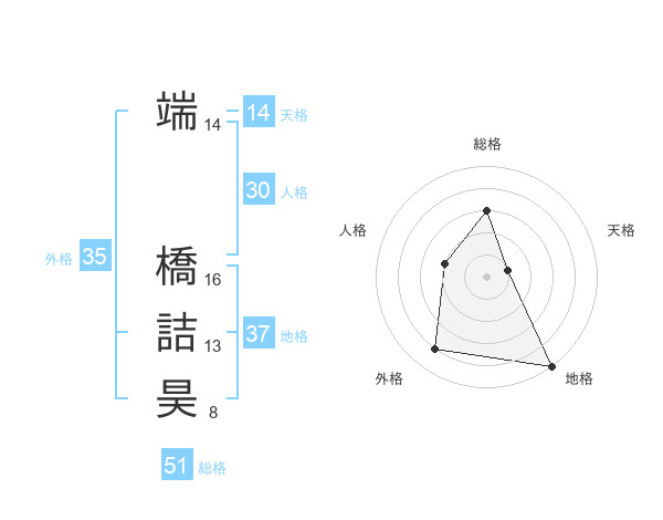 端 橋詰昊さんの総格は51画の3点!