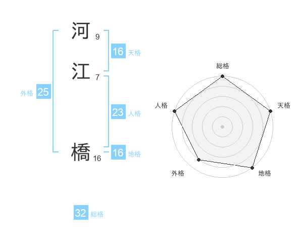 河江 橋さんの総格は32画の5点!