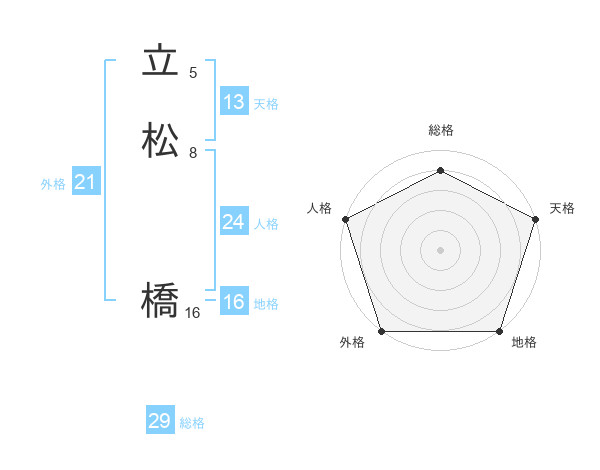 立松 橋さんの総格は29画の4点!