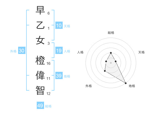 早乙女 橙偉智さんを姓名の画数から五運を鑑定