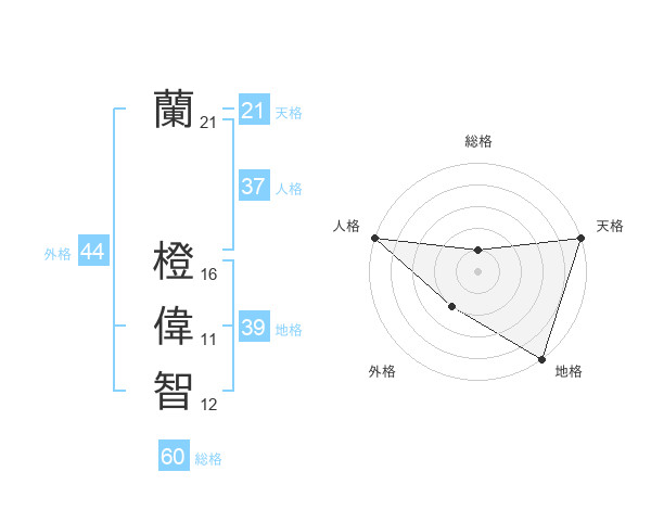 蘭 橙偉智さんを姓名の画数から五運を鑑定